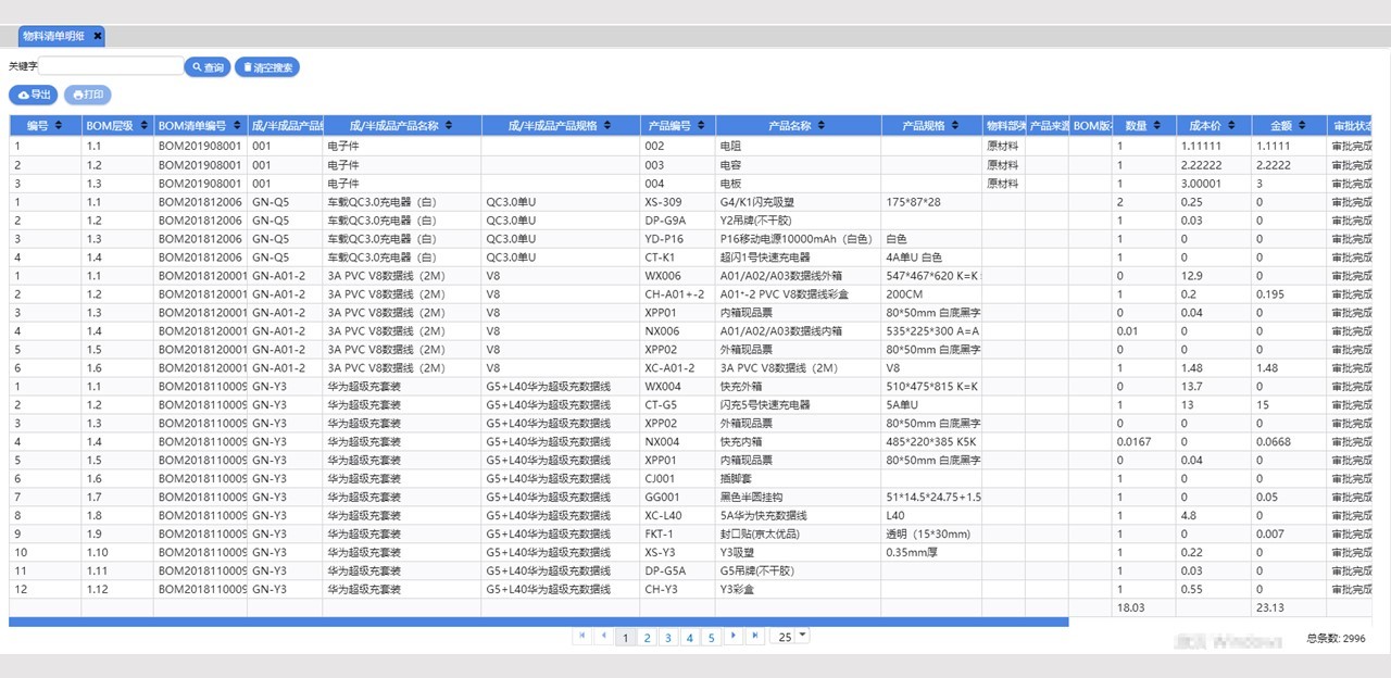 物料清单明细